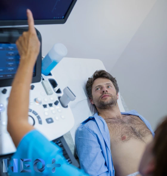 Врач указывает на экран монитора